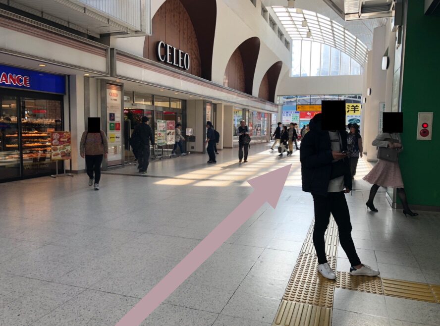 矢印の方向へ進んでください!左手にはCELEOがあります!